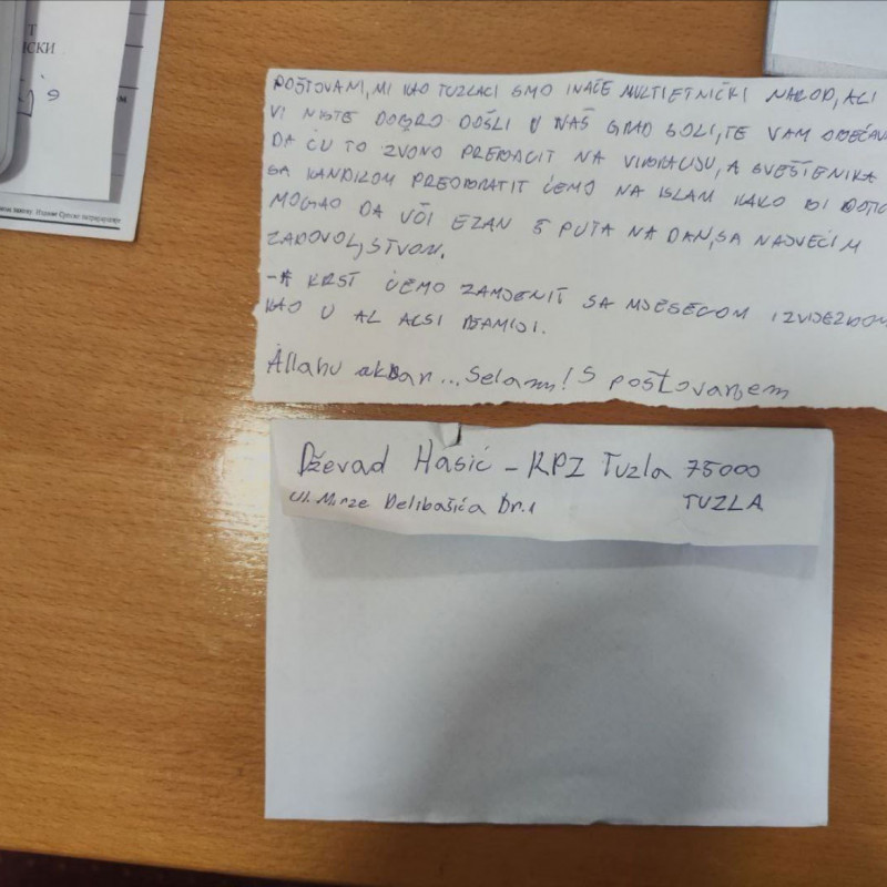 Preteće pismo koje je na adresu Sabornog hrama u Tuzli stiglo iz zatvora