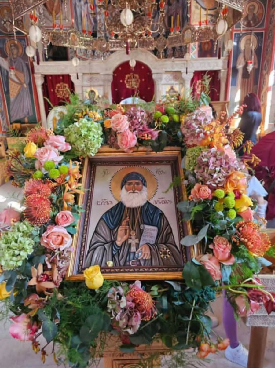 Ikonu su sa ljubavlju i predanošću izradile sestre manastira Samtavro u Gruziji, gde počivaju mošti ovog divnog ugodnika Božjeg. Sveti dar, blagoslovom mitropolita Andreja Gorskog, učenika samog svetitelja, stigao je u Srbiju kao znak bratstva i duhovne povezanosti sa Gruzijskom pravoslavnom crkvom.