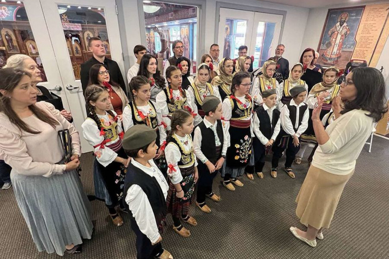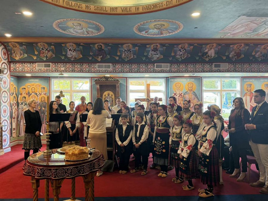 Posle bogosluženja, hram je ispunila radost narodnog sabranja. Zvuk srpskih pesama i šum dečjih koraka razlegali su se salom dok su nastupali horovi „Lira“ i „Dečiji hor Lira“, pod vođstvom protinice Jelene Vranić, kao i folklorna grupa „Prelo“. Igre iz Šumadije i Ponišavlja, uz osmehe i aplauze, uneli su duh otadžbine u američki dom svakog prisutnog Srbina.