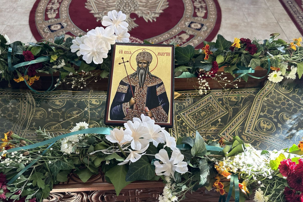 Vladika je naglasio da su mošti Svetog kralja Milutina i danas netruležne i da se čuvaju u hramu Svete Nedelje u Sofiji, te da je milošću Božijom i trudom vernih ljudi, odežda kojom su mošti bile obučene proteklu godinu dana, doneta u Miloševac.
