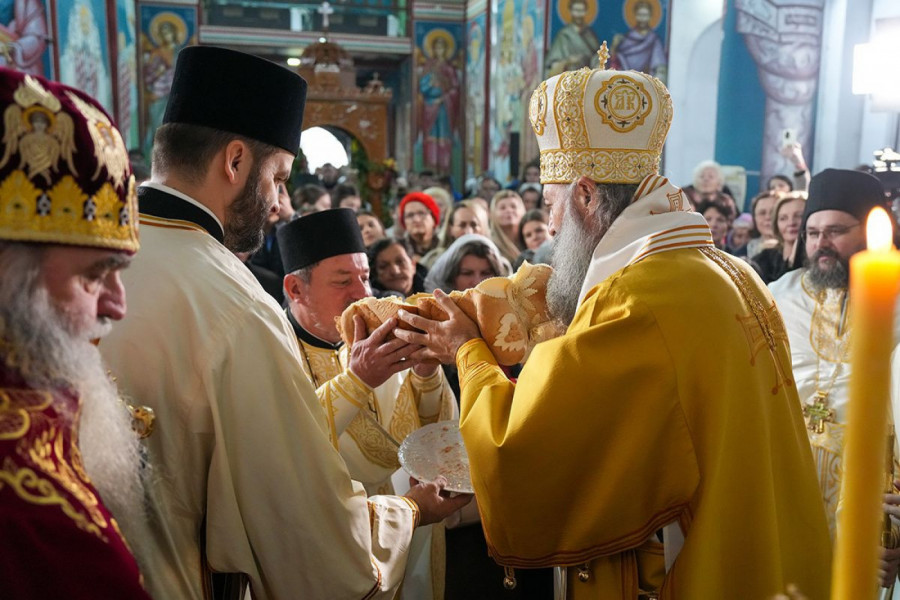 U Sabornom hramu u Podgorici, mitropolit nemački služio je liturgiju i besedio o hrabrosti, dostojanstvu i božanskom dodiru, naglašavajući da vera može preobraziti smrtnost u besmrtnost i doneti isceljenje svima koji veruju.