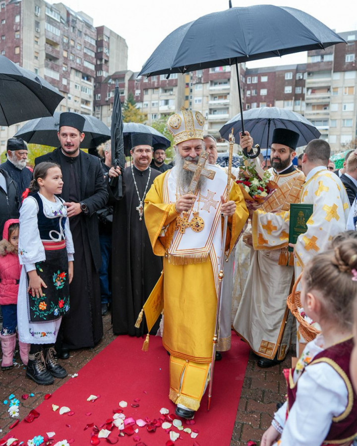 Na prazničnoj liturgiji u hramu Pokrova Presvete Bogorodice, poglavar Srpske pravoslavne crkve pozvao je vernike da svoj život utemelje na Hristu i u molitvi pronađu snagu i mir.