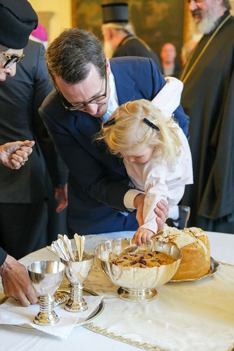 Liturgijsko sabranje nastavljeno je činom blagosiljanja slavskih darova i lomljenja slavskog kolača, koji je Patrijarh Porfirije izvršio zajedno sa prestolonaslednikom Aleksandrom i članovima kraljevskog doma. U tom gestu, jednostavnom i prepunom značenja, ogleda se suština krsne slave – predavanje doma i porodice Bogu, uz zahvalnost i molitvu za budućnost.