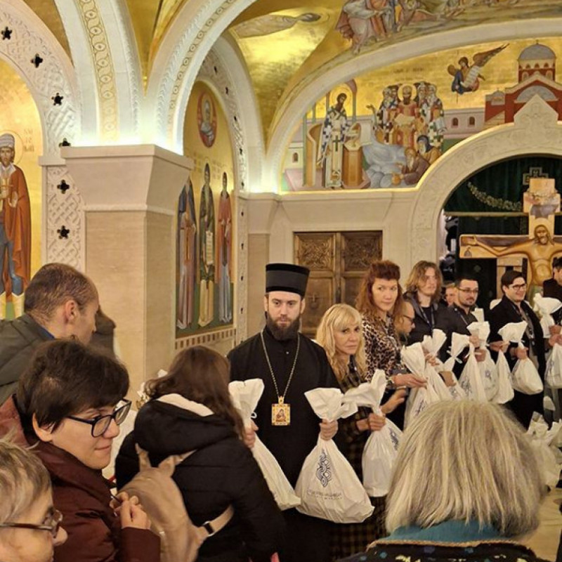 Sa blagoslovom patrijarha srpskog Porfirija, podelu paketića predvodio je episkop toplički Petar, koordinator Verskog dobrotvornog starateljstva Arhiepiskopije beogradsko-karlovačke. Vladika je, obraćajući se mališanima, naglasio: