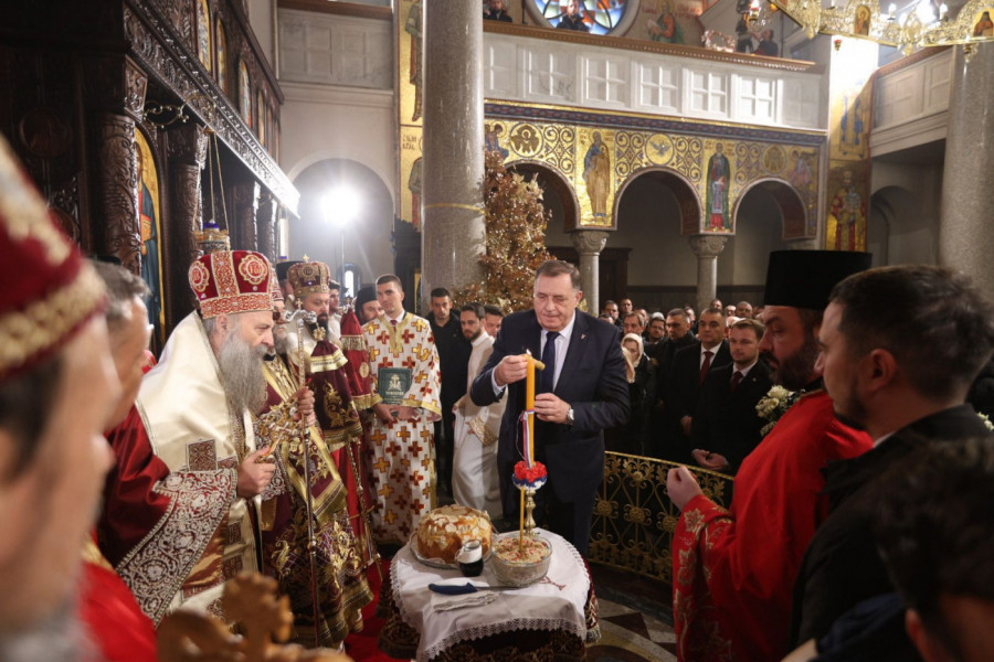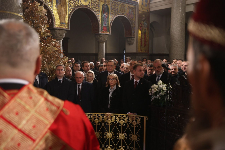 Banjalučka Saborna crkva Hrista Spasitelja jutros je odisala je svečanošću i spokojem. Vernici prilaze hramu sa ikonom, svećom ili u narodnoj nošnji, pripremajući se za svetu liturgiju koju jeslužio patrijarh srpski Porfirije. Atmosfera je istovremeno sabrana i radosna, a hram ispunjava mir molitve i pevanja.