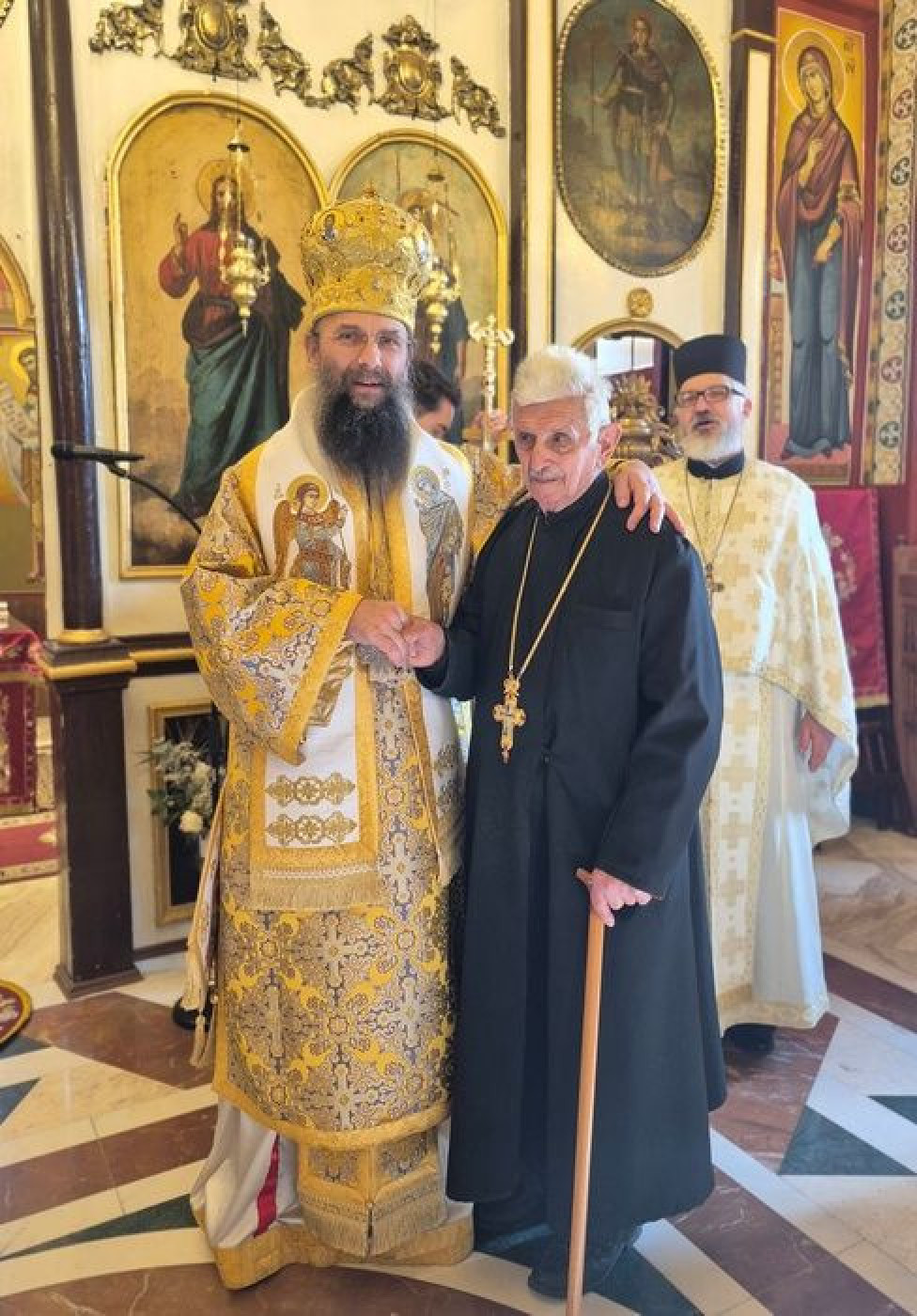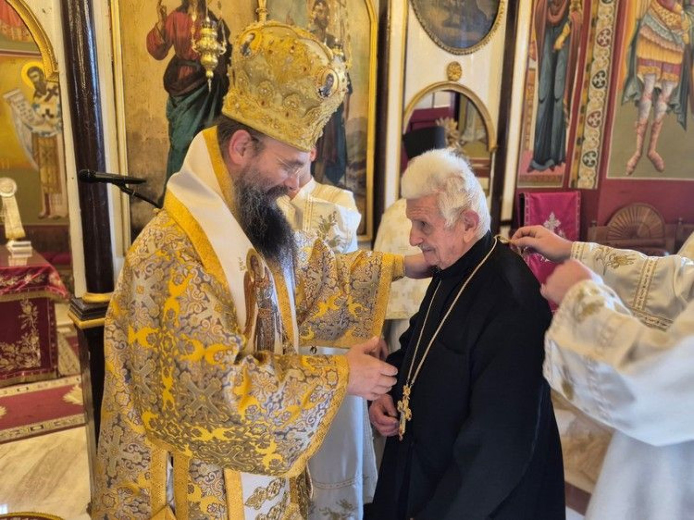 Po otpustu, mitropolit Ilarion čestitao je protojereju Tomislavu Stankoviću na odlikovanju, blagodareći mu na višegodišnjem predanom radu u Crkvi. Međutim, tišina u hramu postala je dublja u trenutku kada je vladika darivao naprsni krst protojereju-stavroforu Borivoju Radojičiću, čestitajući mu sedam decenija svešteničke službe.