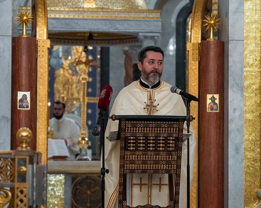 Tokom bogosluženja, jerej Miroslav Vasić je tumačio jevanđeljski odeljak, podsećajući vernike na dubinu praznika: