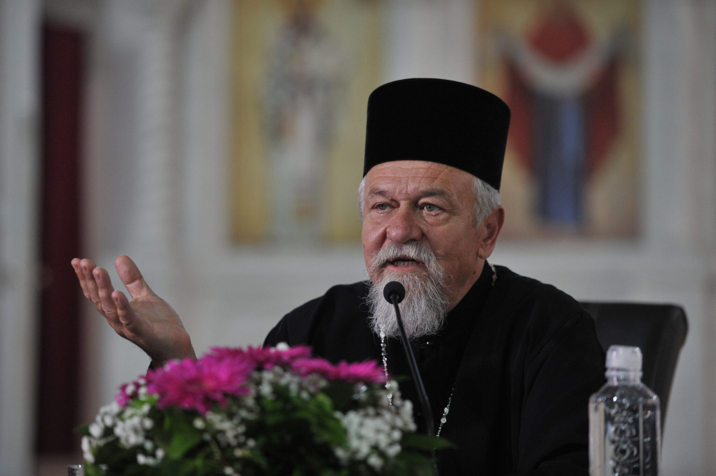 Otac Branko je na početku okupljene upoznao sa istorijskim okolnostima u kojima je nastao bogomoljački pokret.