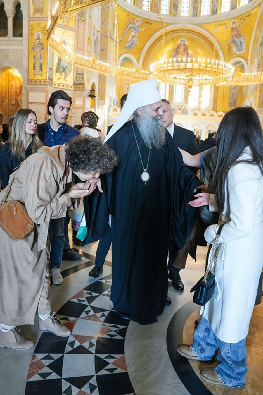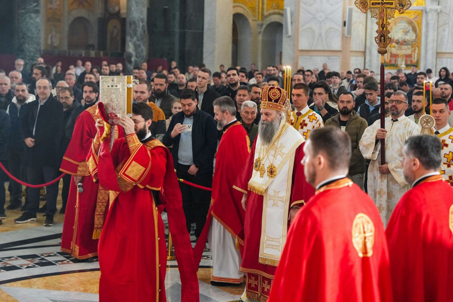 Na krstopoklonu Nedelju, patrijarh porfirije služuo ne liturgiju u hramu Svetog Save