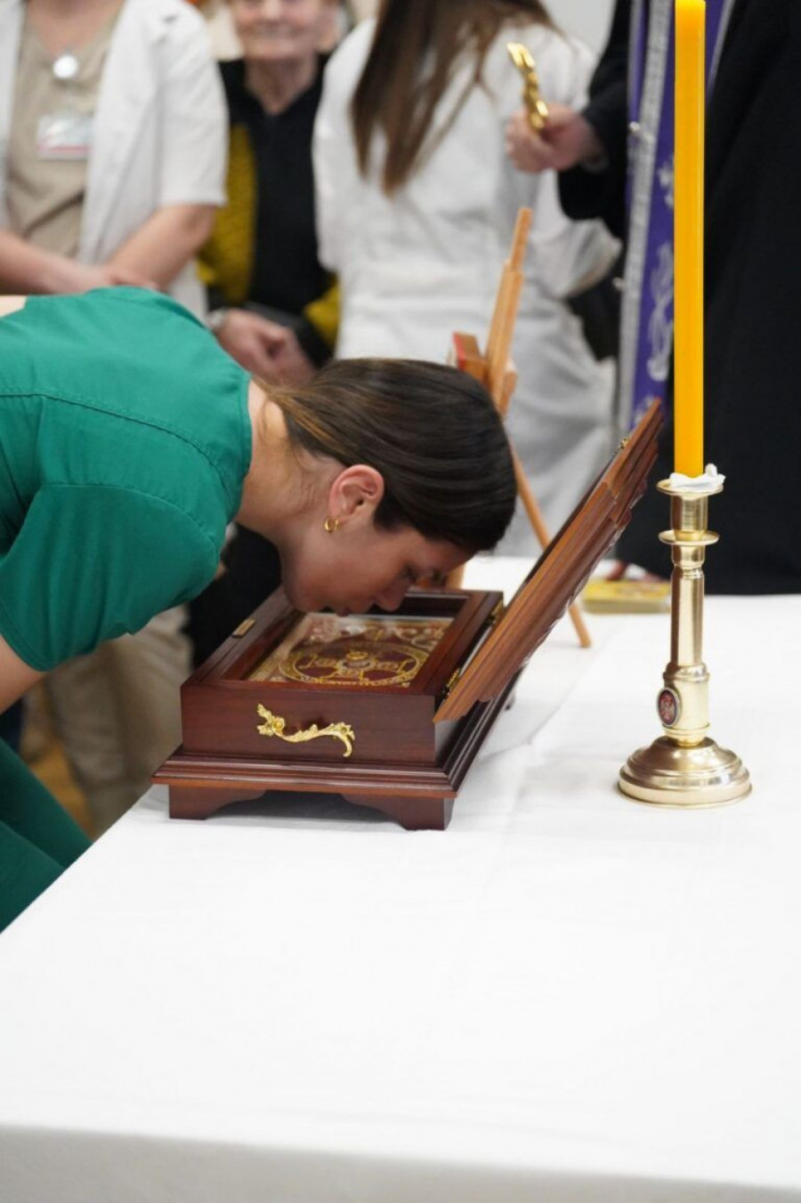Lekari, medicinske sestre, tehničari, ali i pacijenti, prilazili su sa istom pažnjom i smirenošću. U tim susretima nije bilo razlike između onih koji leče i onih koji se leče. Svi su, makar na trenutak, stajali na istoj ravni, pred svetinjom, sa svojim mislima, brigama i nadom.