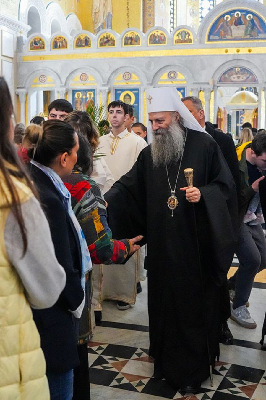 Na praznik koji u bogoslužbenom kalendaru nosi snažnu simboliku ulaska u stradanje i pobedu, patrijarh Porfirije služio je svetu arhijerejsku liturgiju u veličanstvenom Hramu Svetog Save, pred mnoštvom vernih koji su u tišini i sabranosti pratili svaki njegov pokret i reč.