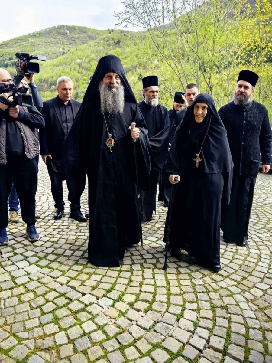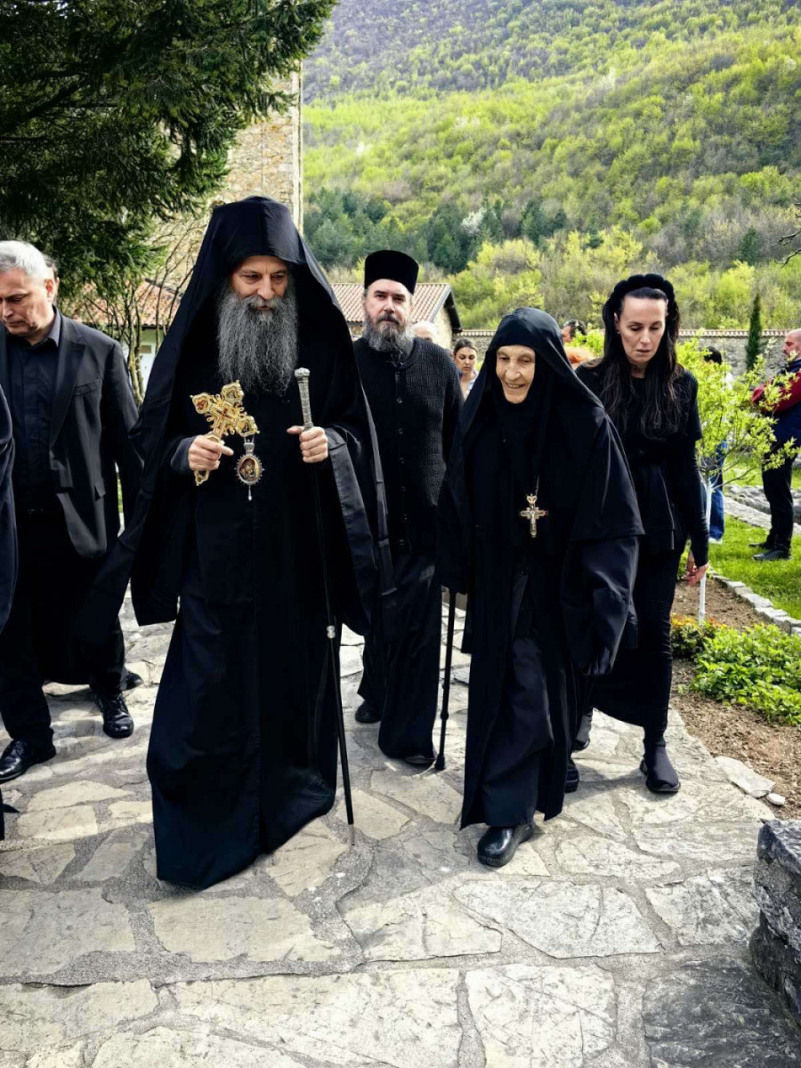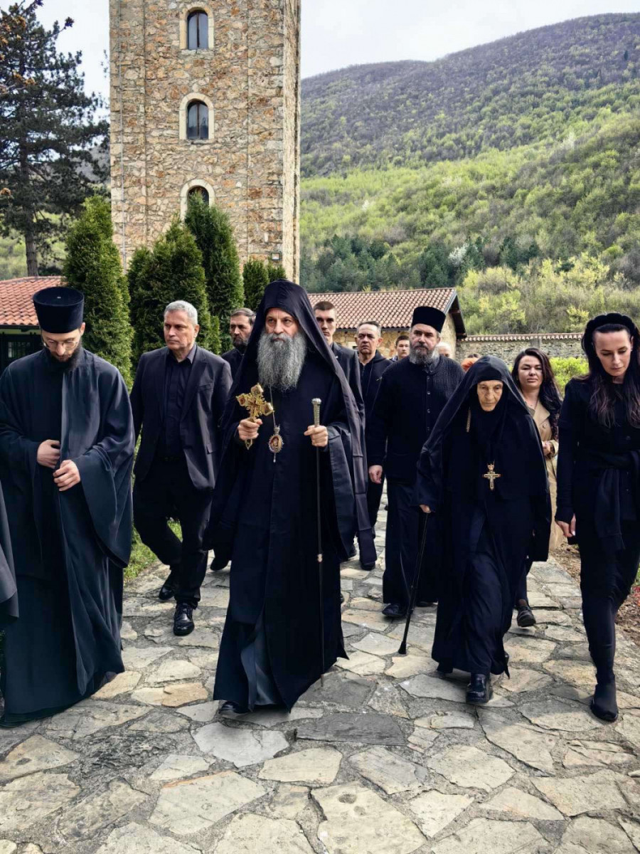Na ulazu u drevnu svetinju dočekala ga je igumanija Haritina sa sestrinstvom, sveštenstvom i sabranim narodom. Bez uobičajenih znakova spoljašnje radosti, susret je protekao u duhu dana koji Crkva posvećuje sećanju na Hristovo stradanje, tiho, dostojanstveno i molitveno.