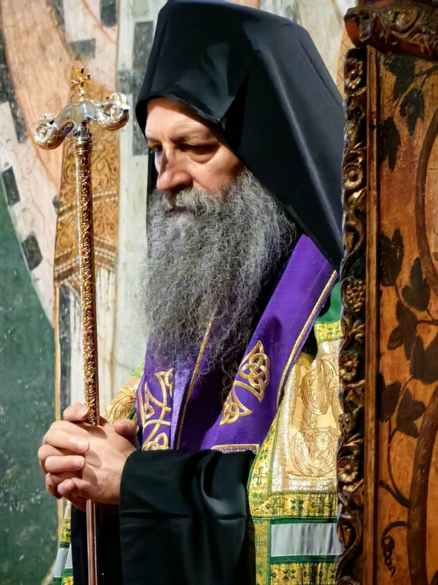 Patrijarh Porfirije služio je večernje sa iznošenjem Plaštanice u manastiru Pećka Patriajršija