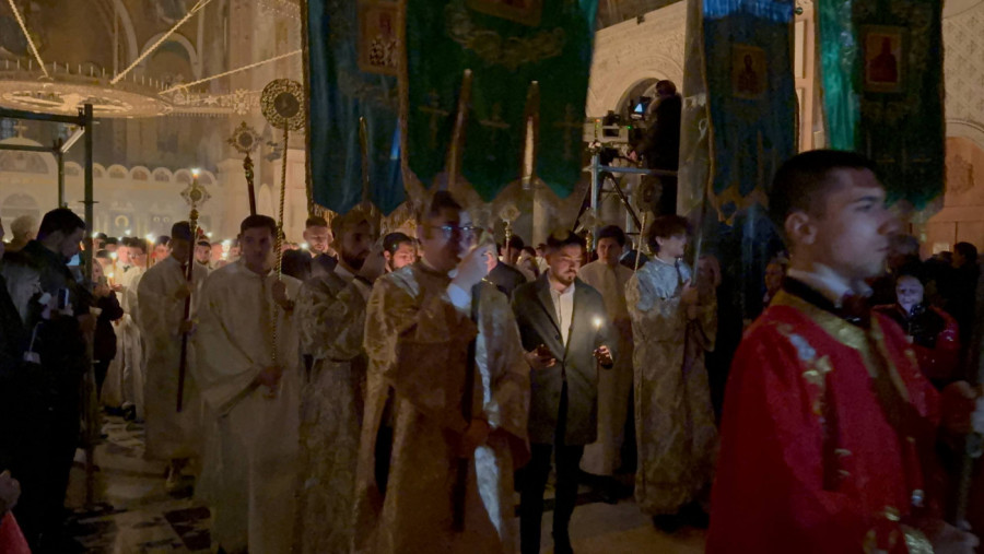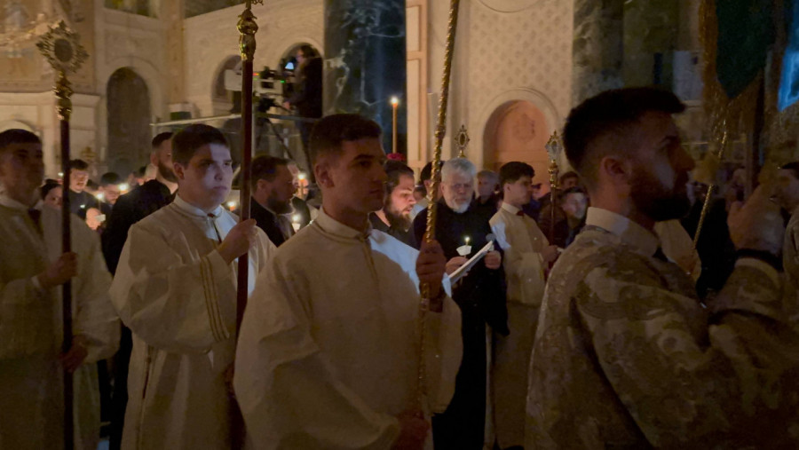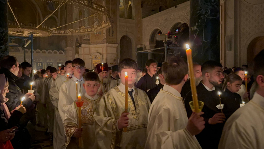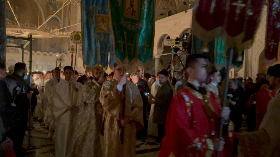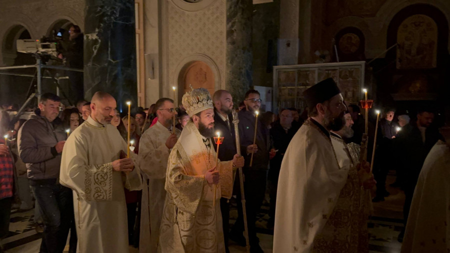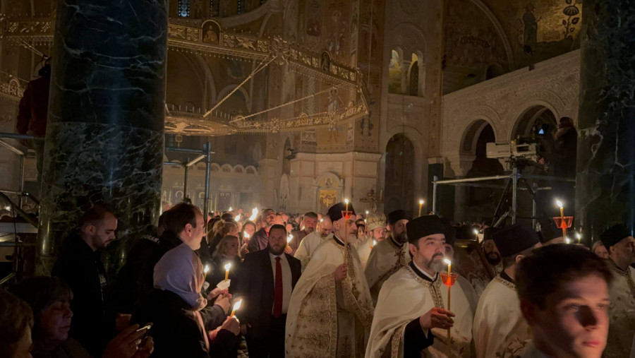 U hramu je prisutan i vikar patrijarha Porfirija, episkop toplički Petar, koji će služiti ponoćnu vaskršnju liturgiju. Njegovo prisustvo daje dodatni liturgijski pečat ovom događaju, u kojem se spajaju Sveta zemlja i Beograd, Grob Gospodnji i sabor vernih.