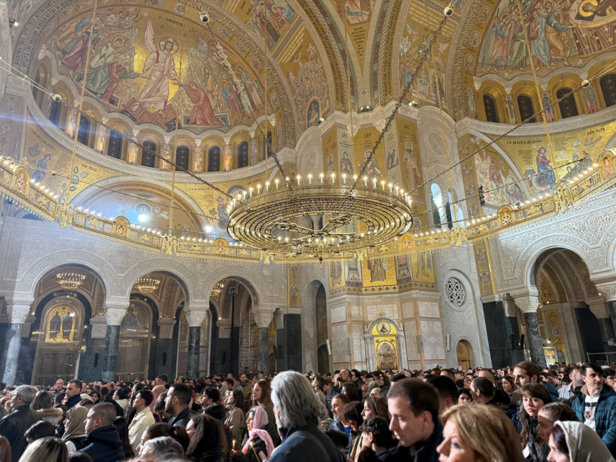 Oko Hrama Svetog Save na Vračaru već u večernjim satima Velike subote počeo je da se sabira veliki broj vernog naroda, koji tradicionalno ispunjava plato i okolne prilaze najvećoj beogradskoj svetinji, u iščekivanju trenutka kada će se u ponoć oglasiti radost Vaskrsenja Hristovog.