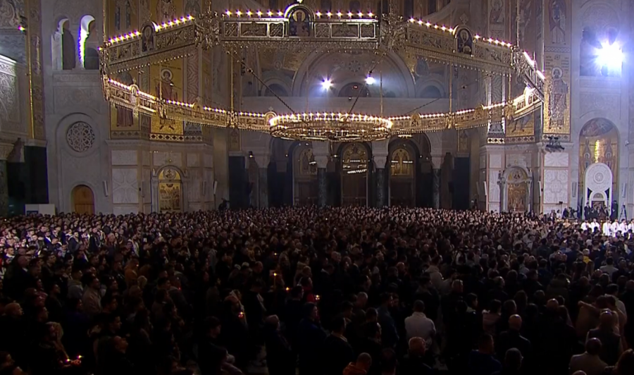 Ponoćnom radosti Vaskrsenja Hristovog započela je svečana vaskršnja liturgija u Hramu Svetog Save na Vračaru, u trenutku kada su se sabrani vernici, sa svećama u rukama i u molitvenoj tišini, pridružili najvećem hrišćanskom prazniku. Liturgiju služi episkop toplički Petar, vikar patrijarha srpskog Porfirija, uz sasluženje sveštenstva i đakonstva Srpske pravoslavne crkve, unoseći u noćni Beograd sabornost i radost Vaskrsenja koja se širi platou i okolnim ulicama prestonice.