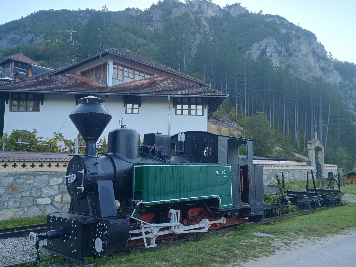 Ispred porte manastira Dobrun stoji stara lokomotiva, kao podsetnik na vremena kada je ovo područje vila važna raskrsnica trgovačkih puteva