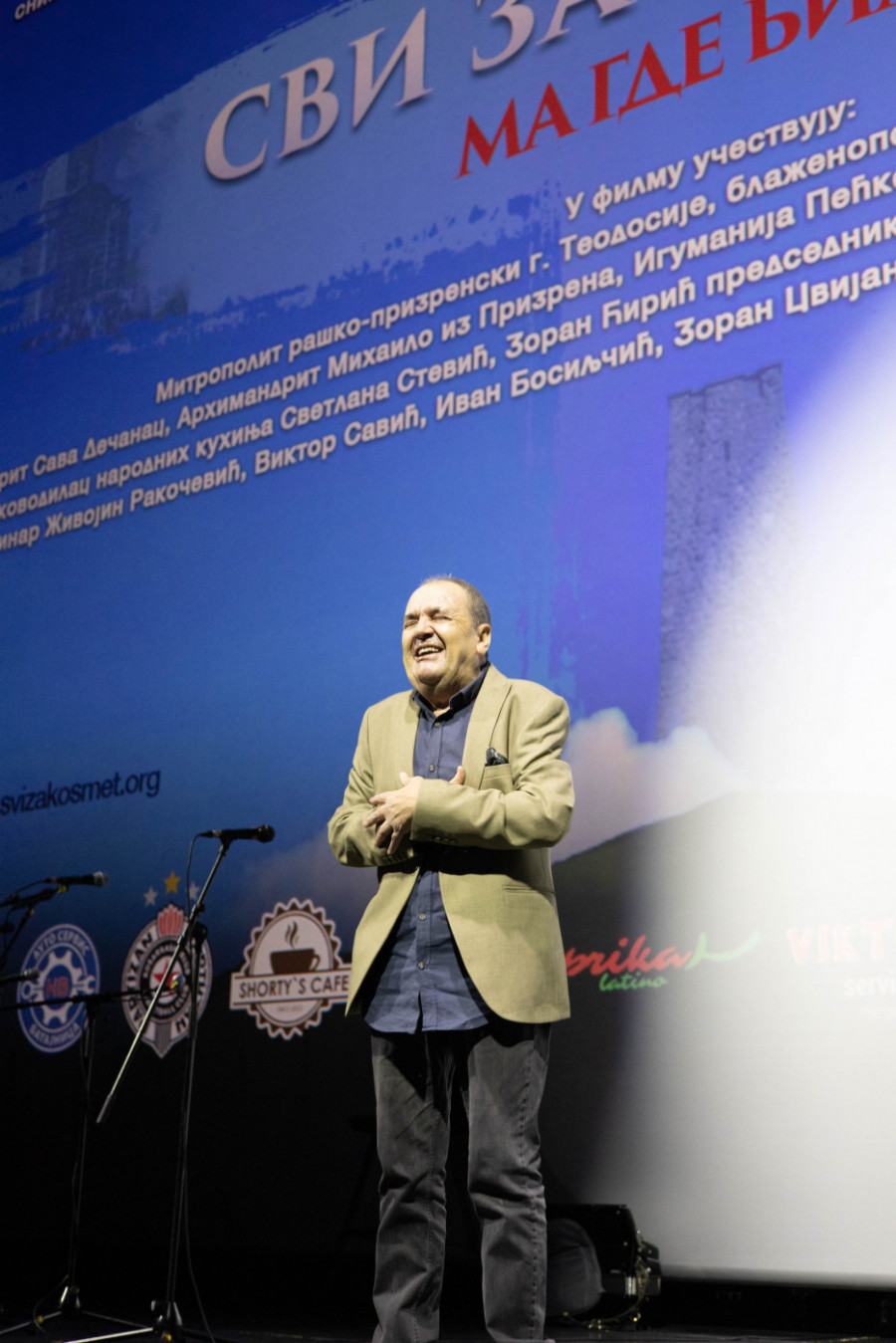 Posle projekcije, osnivač humanitarne organizacije „Svi za Kosmet“ Zoran Ćirić obratio se publici rečima: