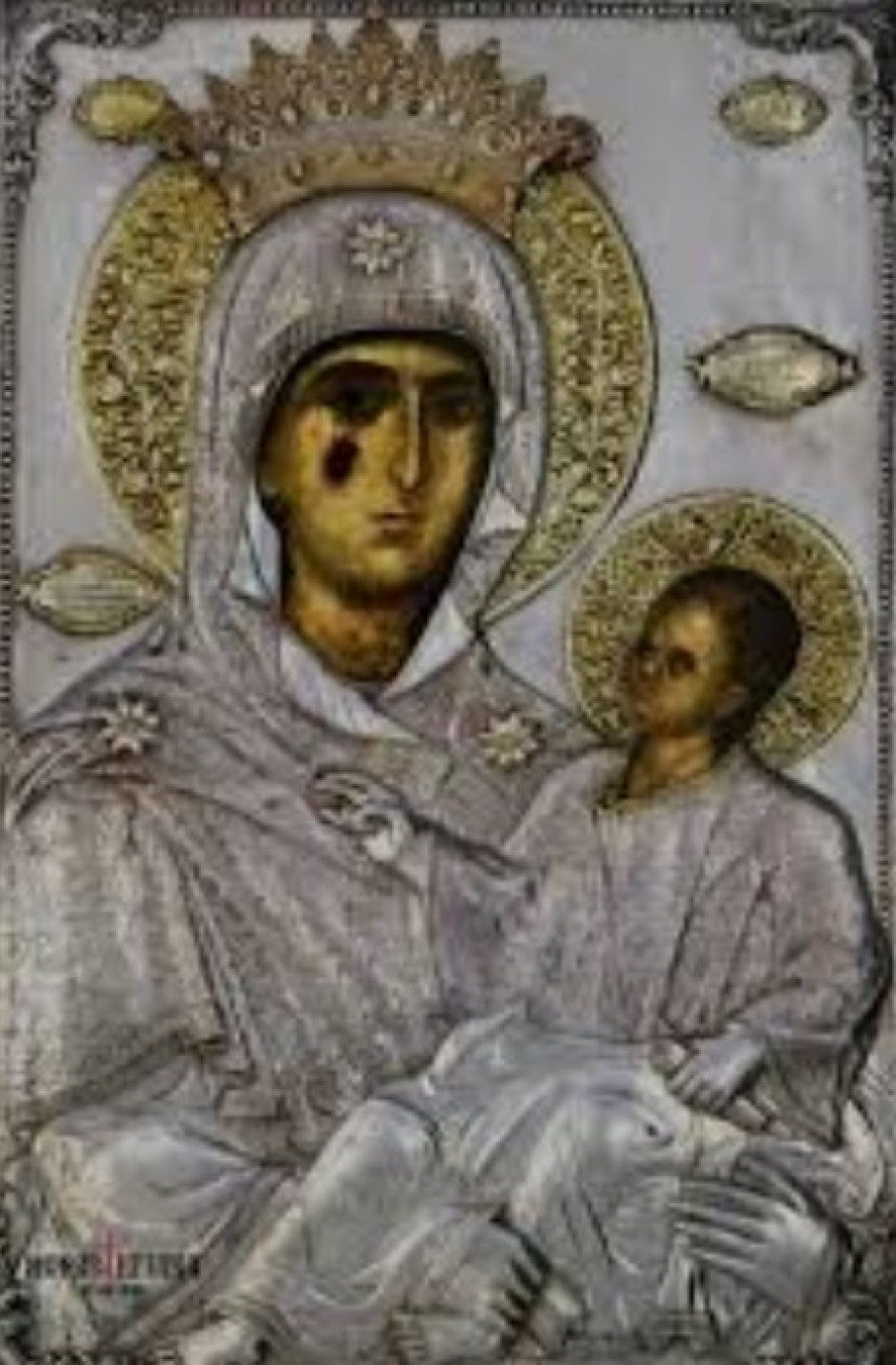 Ova ikona podseća na događaj iz XIV veka, koji se i danas sa strahopoštovanjem prepričava među monasima Svete gore, ali i vernicima. U jednom trenutku duhovnog pomračenja, obuzet gnevom i unutrašnjim nemirom, jedan iskušenik manastira usudio se na nezamislivo - da nožem udari u samo lice Presvete Bogorodice na ikoni.