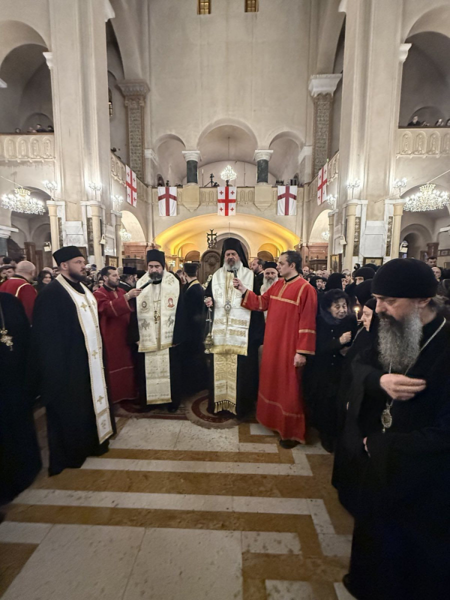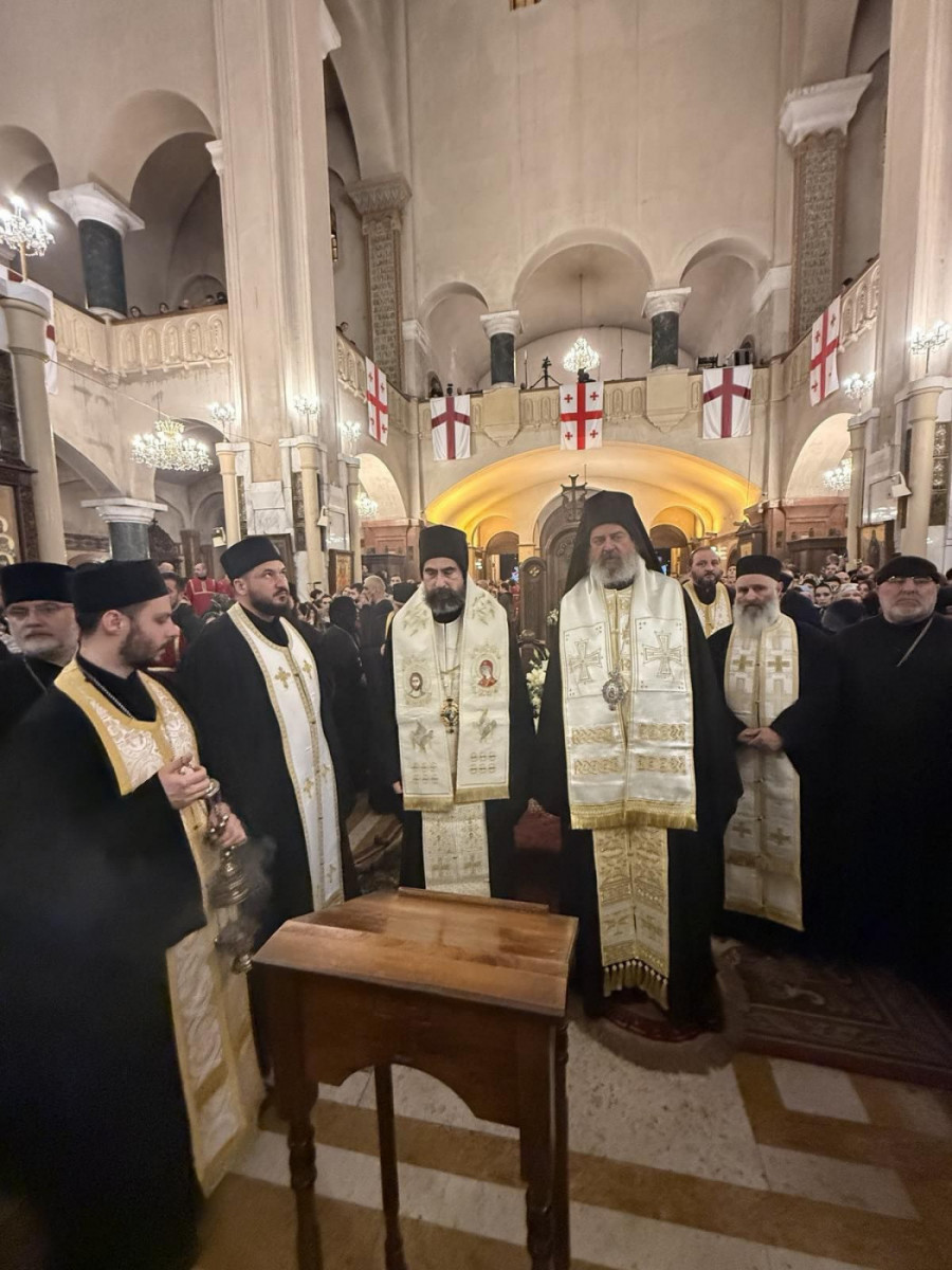 U Tbilisi je još juče stiglo i poslanstvo Srpske pravoslavne crkve, koje predvode mitropolit budimljansko-nikšićki Metodije, član Svetog arhijerejskog sinoda, i episkop valjevski Isihije. U delegaciji su i protonamesnik Filip Jakovljević, kao i Miljan Nikitović.