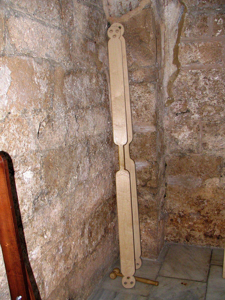 Njegov zvuk, koji nastaje udaranjem po duguljastoj ploči, poziva vernike na molitvu i označava početak bogosluženja.
