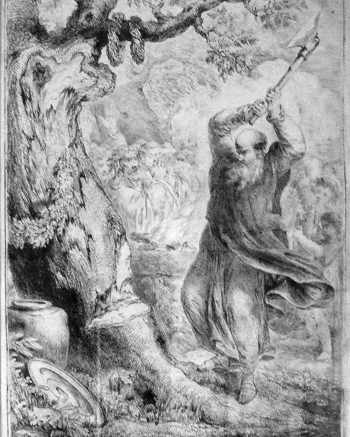 Sveti Bonificije seče "Hrast groma", ilustracija