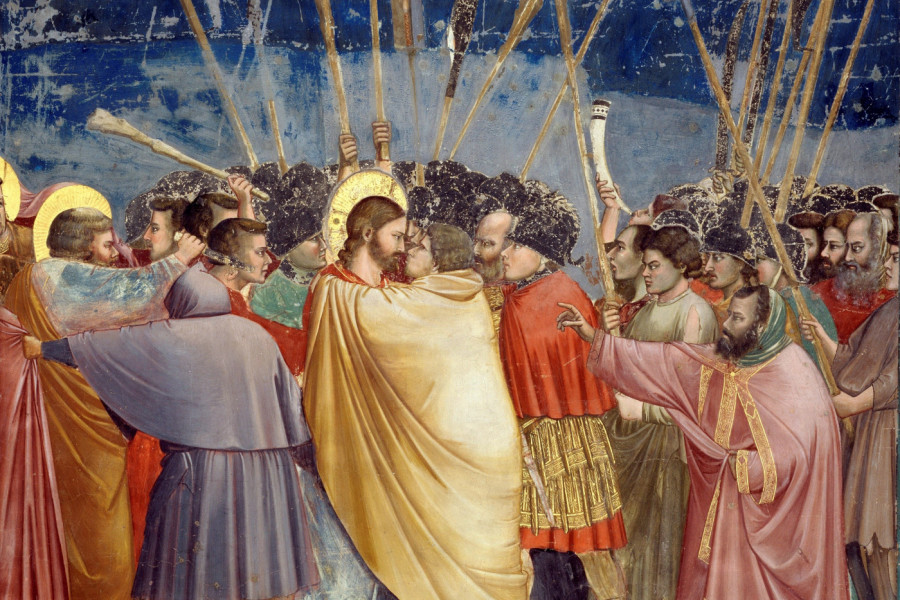 Juda je znao za pomenuti vrt, jer se Isus tu često okupljao sa svojim učenicima, i tu je došao sa slugama prvosveštenika i fariseja. Isusa im je pokazao celivajući ga jer im beše rekao: "Koga poljubim, taj je" (Luka 22:47). Tako su Isusa odveli pred prvosveštenika da mu sudi.