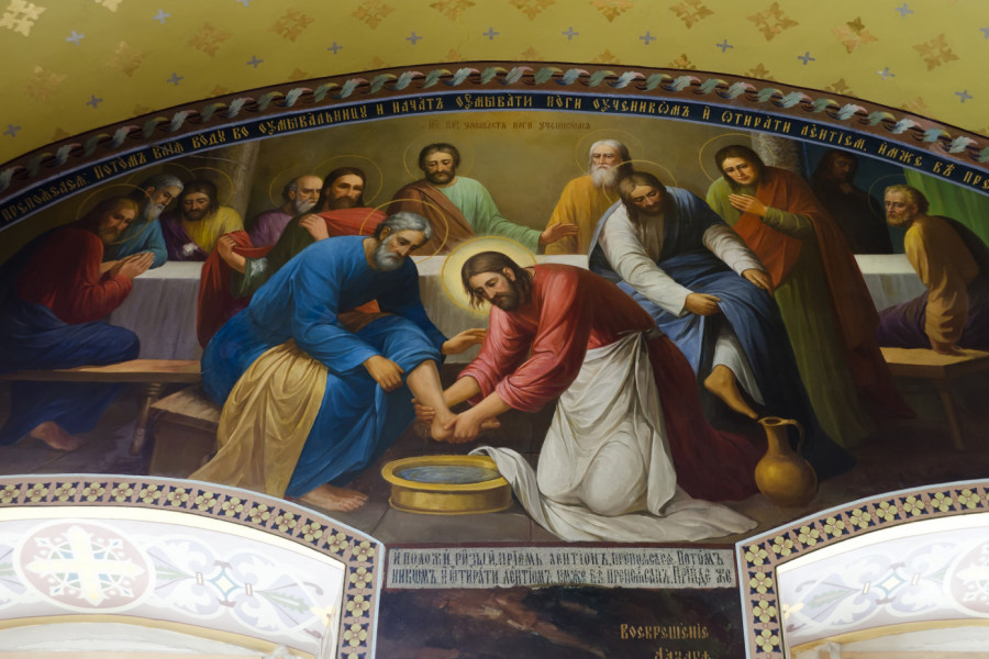 Takođe je svojim učenicima oprao noge učeći ih tako sopstvenim primerom kako treba da služe jedni drugima. Zapovedio im je i da ljube jedni druge. Dalje je otvoreno govorio o predstojećem stradanju i svemu što će mu se dogoditi.