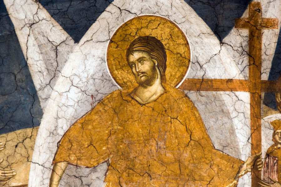 U trenutku vaskrsenja, kako se navodi u Jevanđeljima, dogodio se snažan zemljotres, a anđeo je sišao na grob i odvalio kamen. Stražari koji su ga čuvali, uplašeni prizorom, pali su na zemlju, dok je Hristos vaskrsao.