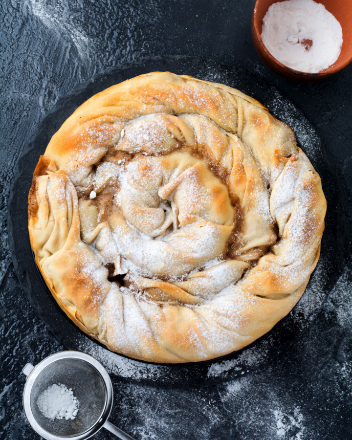 U duhu pravoslavne tradicije, gde se svakodnevni život i postni običaji prožimaju sa duhovnom pažnjom, starinska srpska slatka pita predstavlja pravu poslastičarsku molitvu. Ovaj recept, objavljen 1855. godine u „Srbskom kuvaru“ i potpisan rukom jeromonaha Jeroteja iz manastira Krušedol, nije samo kulinarsko umeće, već i svetinja starih običaja – spoj jednostavnih sastojaka i strpljivog rada koji podseća na mir i disciplinu posta. Kora po kora, fil od badema i suvog grožđa, sa dahom vanile i prah-šećera, stvara slatki trenutak koji nas podseća na blagodati svakodnevnog života, ali i na duhovnu slatkoću koja prati strpljivo ispunjene dužnosti i molitve u manastirskim danima.