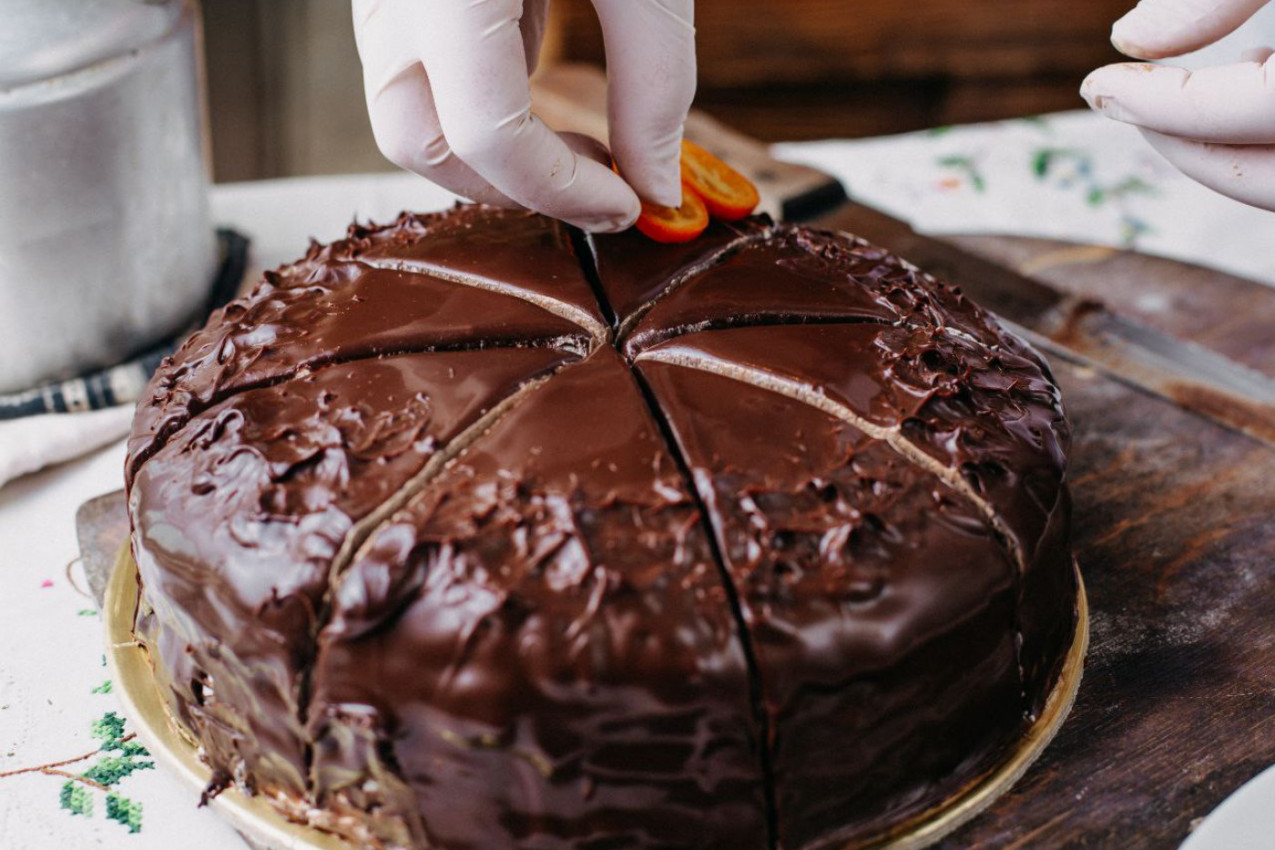 Kolač možete dodatno ukrasiti plodovima kumkvata, rendanom čokoladom ili kandiranom korom pomorandže. Ukoliko posnu čokoladu zamenite topingom od kakaa, vode i šećera, dobićete posni kolač na vodi.