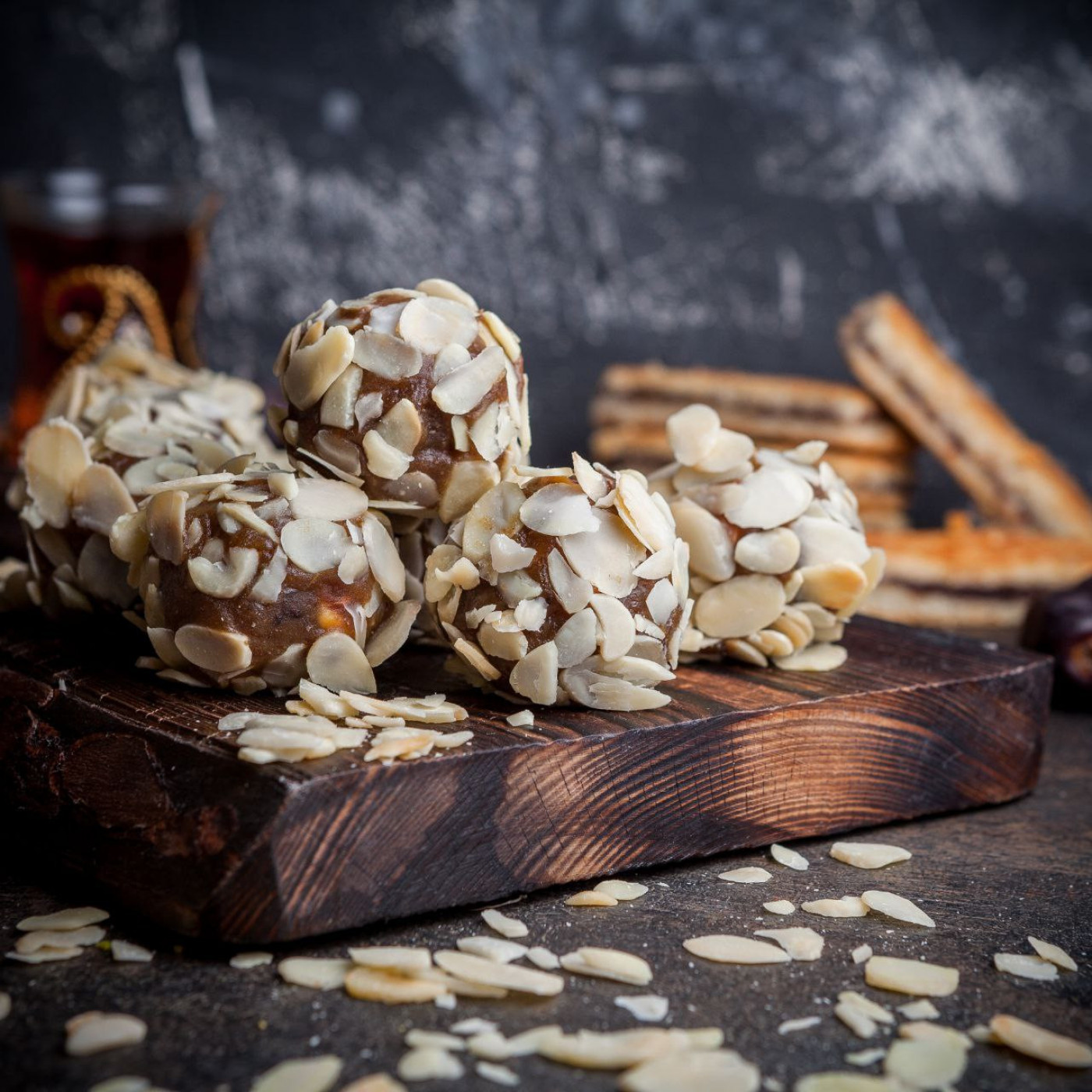 Ove bogate poslastice spajaju najfinije sastojke poput suvog grožđa, mlevenih oraha, urmi i kandirane pomorandžine kore, obogaćene notom badema. Svaka kuglica predstavlja malu umetnost ukusa, pružajući neodoljiv spoj slatkog i hrskavog, idealan izbor za posne trenutke posle obroka.